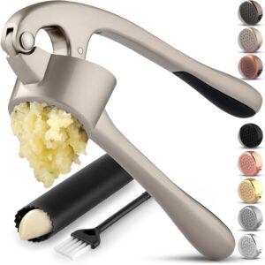 With one quick squeeze, you get perfectly crushed garlic ready to use.