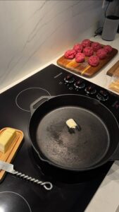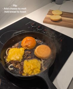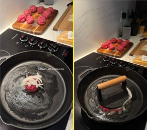 The pan needs to be very hot for the best smash burger crust.