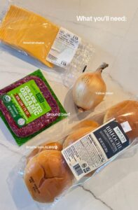- Thinly slice the yellow onion and prepare the brioche buns.