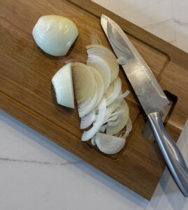 I thinly sliced the yellow onion and set it aside.